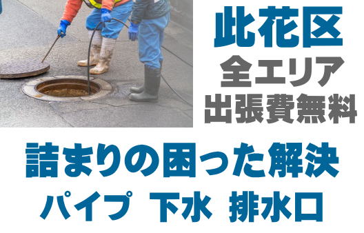 此花区で排水つまり、トイレ詰まり、シンクつまりなどの排水トラブルはお任せください。店舗の厨房、グリストつまりも対応しております。配管つまり、マンホールの溢れ、下水の臭い、排水管のトラブルは最短15分到着!