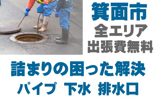 箕面市で排水つまり、トイレ詰まり、シンクつまりなどの排水トラブルはお任せください。店舗の厨房、グリストつまりも対応しております。配管つまり、マンホールの溢れ、下水の臭い、排水管のトラブルは最短15分到着!
