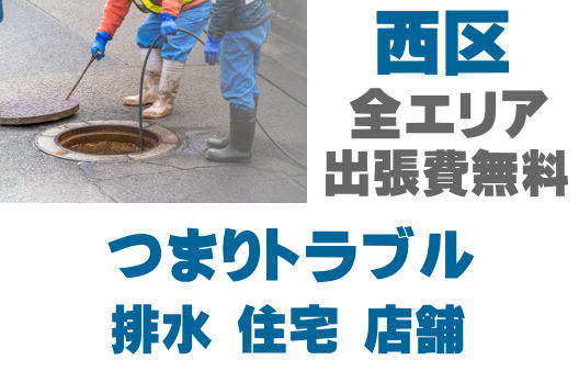 西区で下水つまり、トイレの溢れ、厨房やグリストラップつまりを修理を行っている会社です。