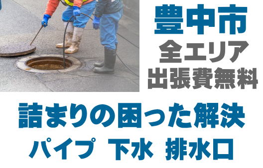豊中市で排水つまり、トイレ詰まり、シンクつまりなどの排水トラブルはお任せください。店舗の厨房、グリストつまりも対応しております。配管つまり、マンホールの溢れ、下水の臭い、排水管のトラブルは最短15分到着!