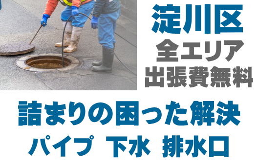 淀川区で排水つまり、トイレ詰まり、シンクつまりなどの排水トラブルはお任せください。店舗の厨房、グリストつまりも対応しております。配管つまり、マンホールの溢れ、下水の臭い、排水管のトラブルは最短15分到着!